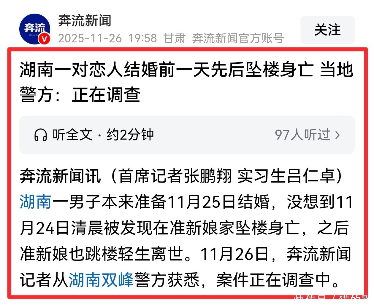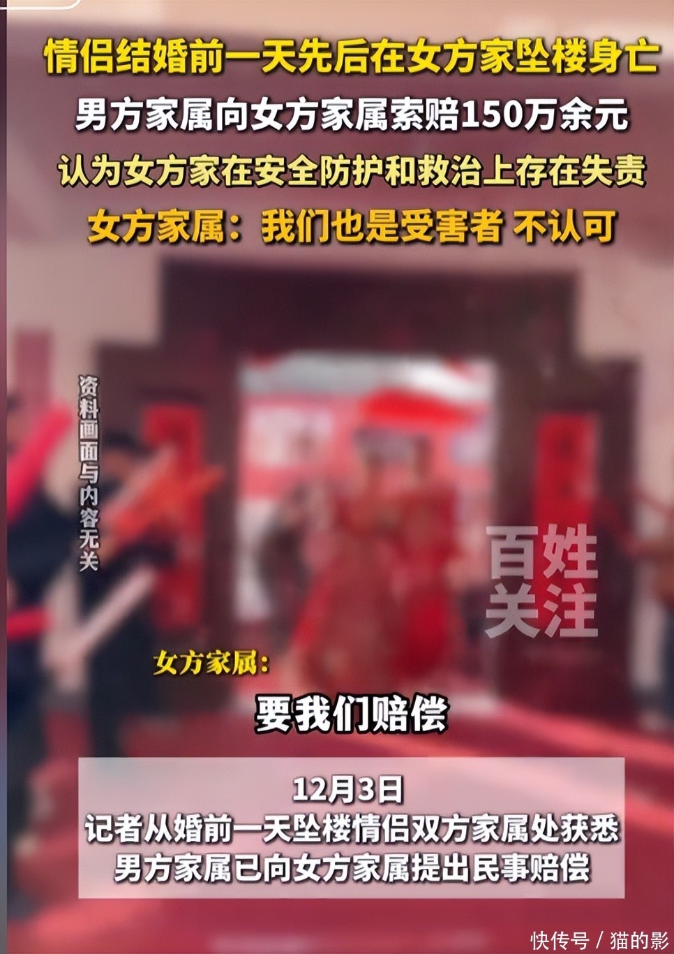 湖南“新郎新娘先后坠亡”事件后续:男方家属向女方索赔157万----2025-12-04 ----大河报